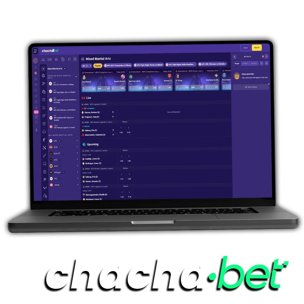 Chachabet biedt weddenschappen op meerdere MMA-organisaties, waaronder de UFC, Bellator en ONE Championship. Het aanbod varieert per evenement, maar grote galas worden doorgaans volledig afgedekt met meerdere markten per gevecht.