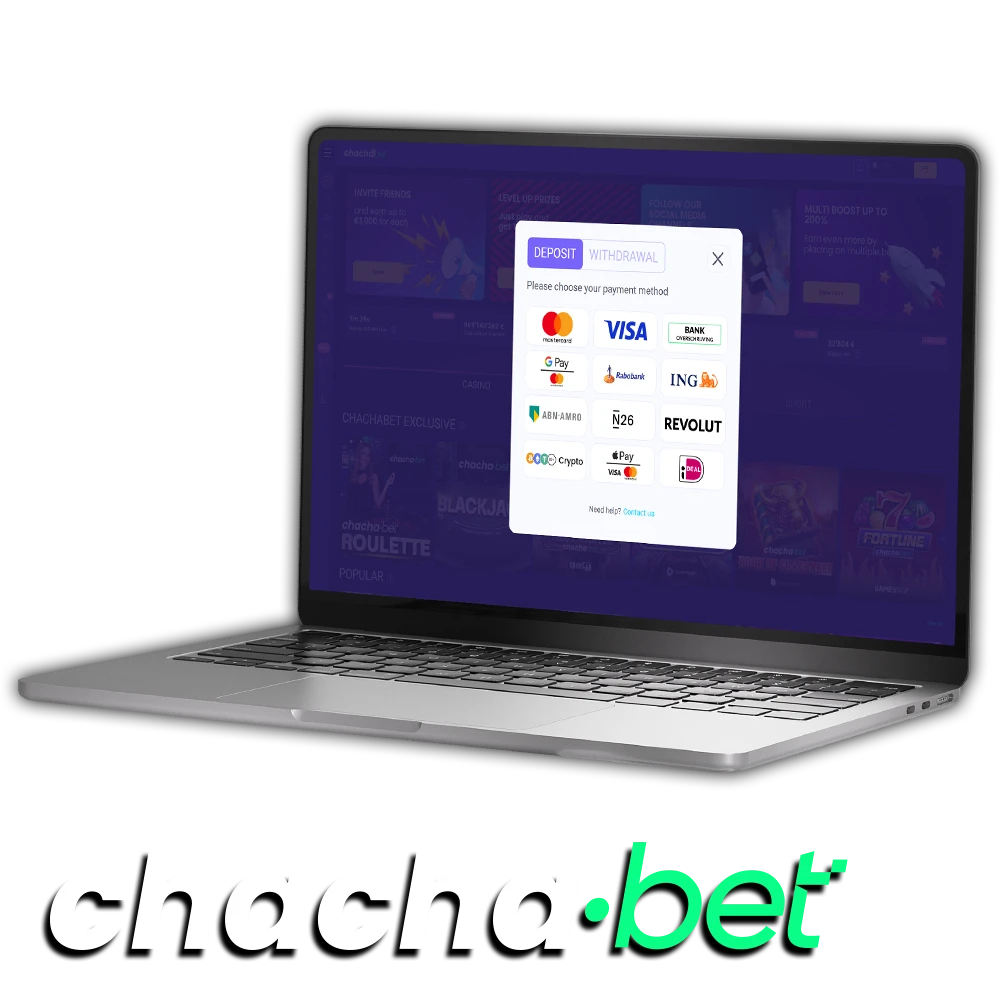Chachabet biedt spelers in Nederland een uitgebreide keuze aan betaalmethoden, waarbij geen commissie wordt berekend op stortingen. Het minimale stortingsbedrag is €10 en transacties worden doorgaans direct verwerkt, zodat je saldo vrijwel onmiddellijk beschikbaar is.